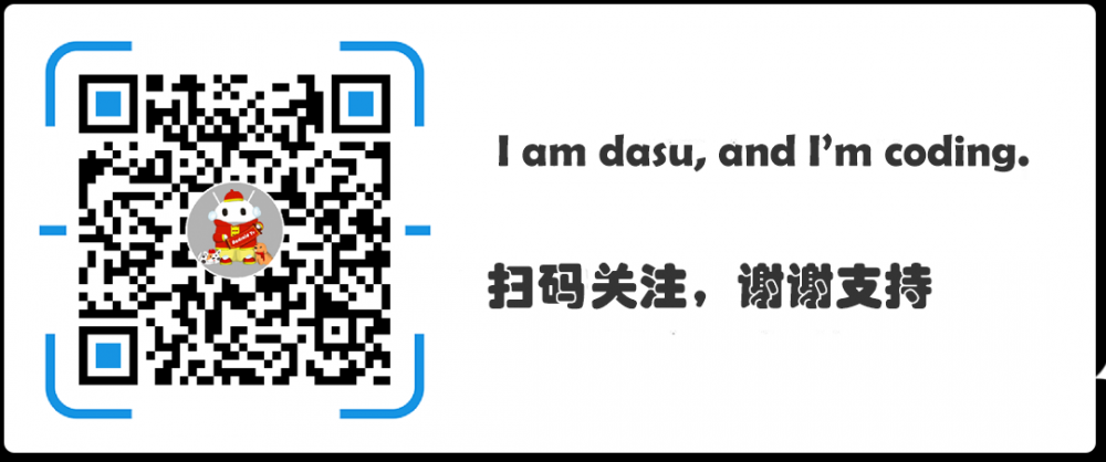 大家好,我是 dasu,欢迎关注我的公众号(dasuAndroidTv),公众号中有我的联系方式,欢迎有事没事来唠嗑一下,如果你觉得本篇内容有帮助到你,可以转载但记得要关注,要标明原文哦,谢谢支持~
