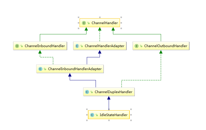 IdleStateHandler的继承关系:通过ChannelDuplexHandler类继承ChannelInboundHandler和实现ChannelOutboundHandler来实现对入站和出站的重写和监控