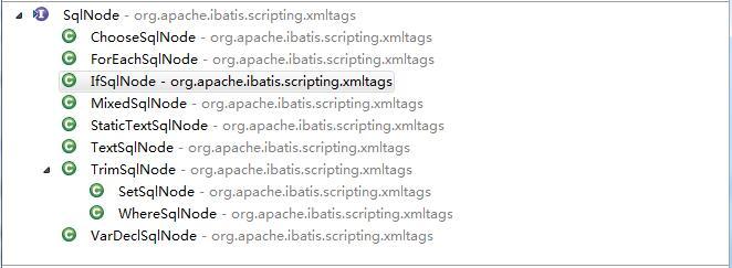 具体哪种sql是动态的,哪种是静态的,相关逻辑在parseDynamicTags中判断的,此处大致说一下其中的原理:遇到 ${} 和动态标签如 <if>,<set>,<foreach> 则为DynamicSqlSource,否则为StaticSqlSource也就是常见的 #{} ;在解析动态sql的时候Mybatis为每个标签专门提供了处理类NodeHandler,初始化信息如下: