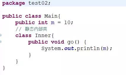 // System.out.println(j);//报错,静态内部类不能读取外部类的非静态变量
