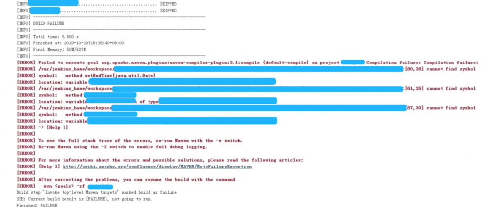 用户在 Jenkins 上跑构建时,失败了,把日志截图给我看,如下图: