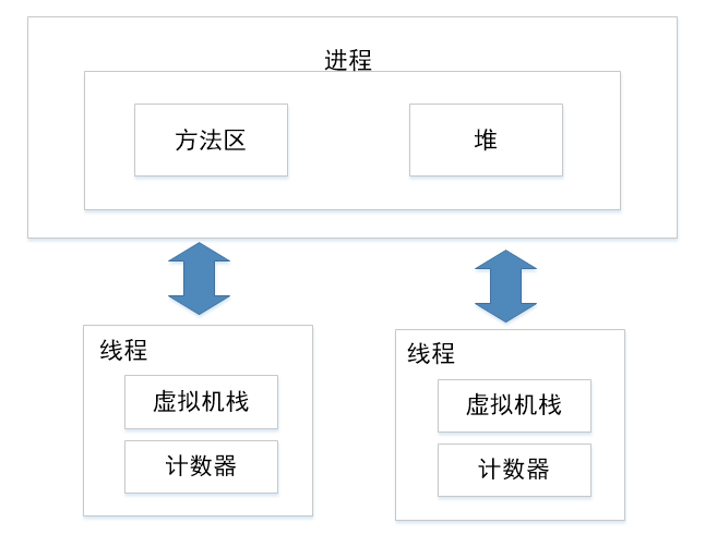 别在于线程没有独立的存储空间,而是和所属进程中的其它线程共享一个存储空间,这