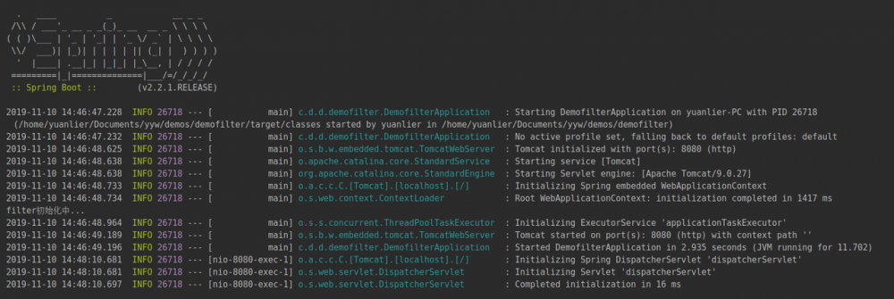 启动项目,可以看到我们的过滤器已经随着程序的启动被成功初始化了