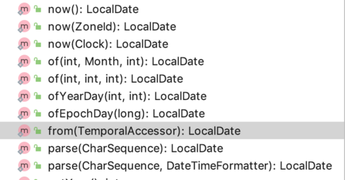 | from类1个 | from(TemporalAccessor temporal) 通过一个Temporal对象来初始化日期,具体用法见例子 |