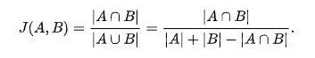 首先是 Jaccard 相似度系数,下面是它在维基百科上的一个定义及计算公式。