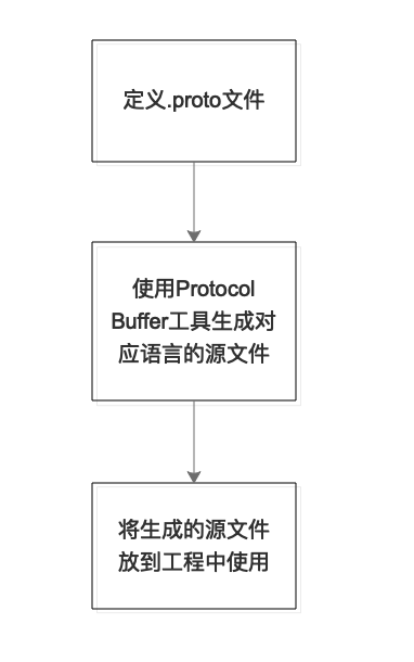 Protocol Buffer的使用流程总体可以分为三步,如下图所示:
