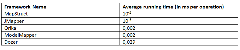在这篇文章中,我们已经进行了五个流行的 Java Bean 映射框架性能测试:ModelMapper , MapStruct , Orika ,Dozer, JMapper。