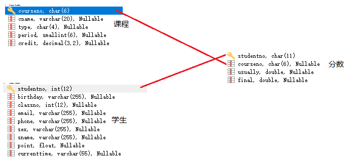 因此,为了找到表之间多对多的关系,需要引入第三个表(分数表),分数表中含有课程表和学生表的主键,可以将两个本来没有关联的表通过第三个表连接起来。
