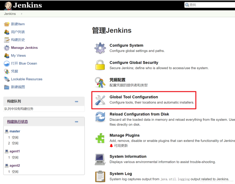 | agent1 | 192.168.133.132 | Jenkins集群的一号工作接节点,标签是<font color="blue">maven</font> |