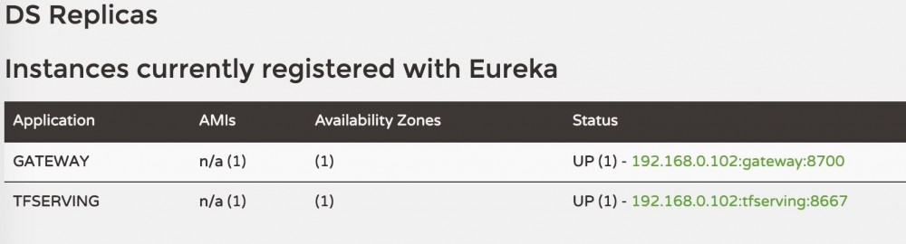 eureka.client.serviceUrl.defaultZone=http://localhost:8761/eureka/ ##Sidecar注册到Eureka注册中心的端口 server.port=8667 ## 服务的名称,在Eureka注册中心上会显示此名称(在生产环境中,此名称最好与Sidecar所代理服务的名称保持一致) spring.application.name=tfserving ##Sidecar监听的非JVM服务端口 sidecar.port=8501 ##非JVM服务需要实现该接口,[响应结果](#原有服务实现健康检查API)后面会给出注册配置 sidecar.health-uri=http://localhost:8501/v1/health #hystrix.command.default.execution.timeout.enabled: false hystrix.metrics.enabled=false