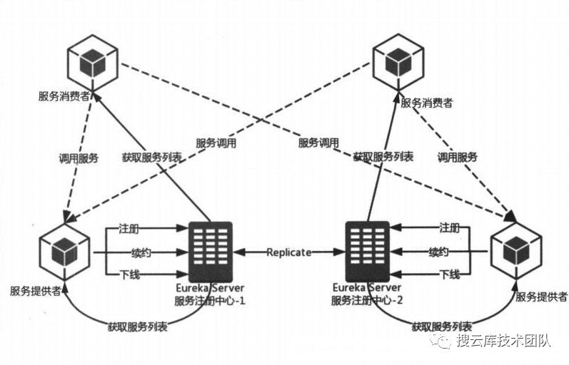Eureka:各个服务启动时,Eureka Client都会将服务注册到Eureka Server,并且Eureka Client还可以反过来从Eureka Server拉取注册表,从而知道其他服务在哪里