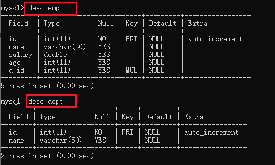 表:emp,dept。