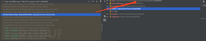 用poc直接大断点,发现Filter是ShiroFilterFactoryBean$SpringShiroFilter。