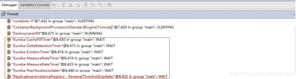 至此Eureka server的初始化就完成了。 这里通过debug模式来看看初始化过程中的定时任务。
