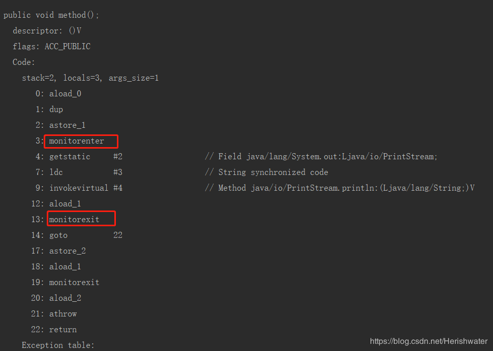 Java 虚拟机中的同步(Synchronization)基于进入和退出管程(Monitor)对象实现, 无论是显式同步(有明确的 monitorenter 和 monitorexit 指令,即同步代码块)还是隐式同步都是如此。在 Java 语言中,同步用的最多的地方可能是被 synchronized 修饰的同步方法。同步方法 并不是由 monitorenter 和 monitorexit 指令来实现同步的,而是由方法调用指令读取运行时常量池中方法的 ACC_SYNCHRONIZED 标志来隐式实现的