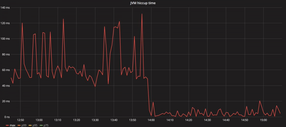 刚开始我们使用的是 G1,新创建的服务在达到负载峰值之前可以正常运行,但在达到负载峰值后就变得非常脆弱。时而会出现几秒钟的 FullGC,并间接性地出现 100 毫秒到 200 毫秒的停顿。一个预期每秒可以处理 1 万个请求的服务在耗费 70% 资源处理负载时伴随着 5 秒钟的停顿,这种情况你能想象吗?很多请求被积压起来,在停顿之后的数秒内,它就像抽了疯一样。停顿期间和停顿之后被挂起的请求造成了 QoS 的降级。