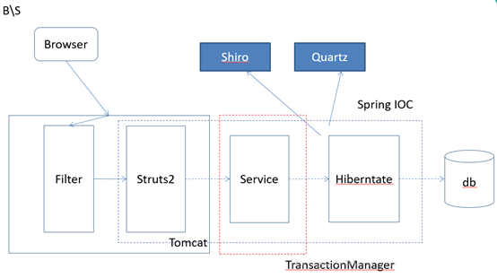 这张图上展示了一个基于SSH,B/S结构的单体Java应用的搭建过程,首先通过浏览器进入到Filter拦截器,进入到Structs2,通过Service层进入到Hibernate,从而进行数据库,经过而这整个过程都是由SpringIOC容器控制。这张图向我们展示了一个比较基础的JavaWeb的搭建过程。万变不离其宗,后来使用的SSM框架,现在比较火的微服务架构,都离不开这张图上展示的内容所提供给大家的思想。每个框架的实现宗旨都是一样的,只不过实现的方式不一样。其实在这个框架最初的时候应该是以JSP+Servlet比较常用,后来为了解决前后端分离的问题,降低耦合度。将这些功能结构按照MVC分层实现。个人的理解MVC为一种程序设计思想,可以很多场合使用到,从Web、后端、移动端在很多的场合下将MVC作为一种程序设计思想应该是比较恰当的,对于MVC的设计思想这里不做过多的说明。下面我们就来学习Spring框架的深入理解,既然说到要深入理解那么就应该先来个简单一点的为引导进入到深处。