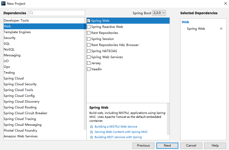 首先我们来创建一个 Spring Boot 工程,创建时只需要添加一个 Web 依赖即可: