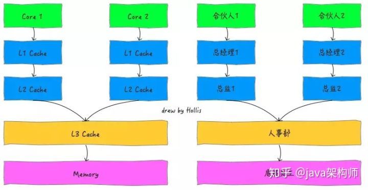 多核CPU就像一家公司是由多个合伙人共同创办的,那么,就需要给每个合伙人都设立一套供自己直接领导的高层管理人员,多个合伙人共享使用的是公司的底层员工。还有的公司,不断壮大,开始差分出各个子公司。各个子公司就是多个CPU了,互相之前没有共用的资源。互不影响。
