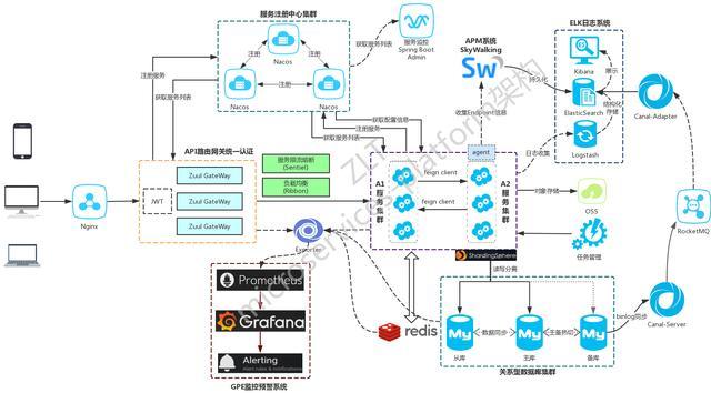 3、系统监控功能:服务调用链监控、应用拓扑图、慢查询SQL监控、应用吞吐量监控(qps、rt)、服务降级、熔断监控、服务限流监控、微服务服务监控、服务器监控、redis监控、mysql监控、elasticSearch监控、nacos监控、prometheus监控