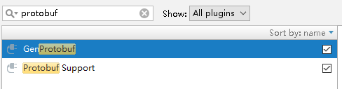 我ide是idea的,安装了两个插件,GenProtobuf是用来生成java文件的,Protobuf Support是用来高亮、语法检查等。