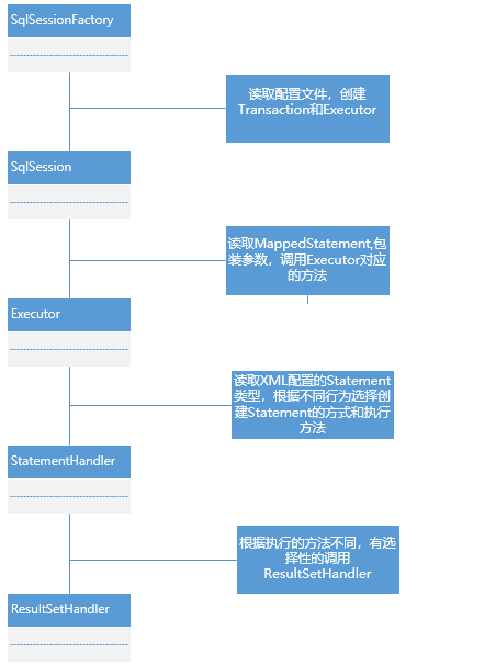 先上图,按道理来说时序图应该是最合适的,但是我觉得上面的文字过多。接下来结合上面的图详细说说 MyBatis 从启动到返回结果的流程。