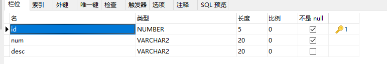 "num" VARCHAR2(20 BYTE) NOT NULL ,