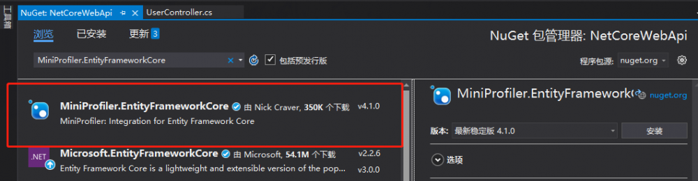 通过管理 NuGet 程序包安装,搜索Swashbuckle.AspNetCore