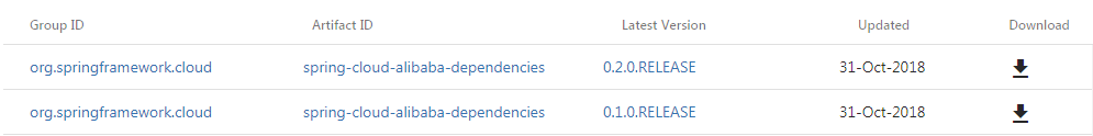 Spring Cloud for Alibaba 0.1.0.RELEASE 和 0.2.0.RELEASE 两个包都已经提交到了 Maven 中央仓库了。