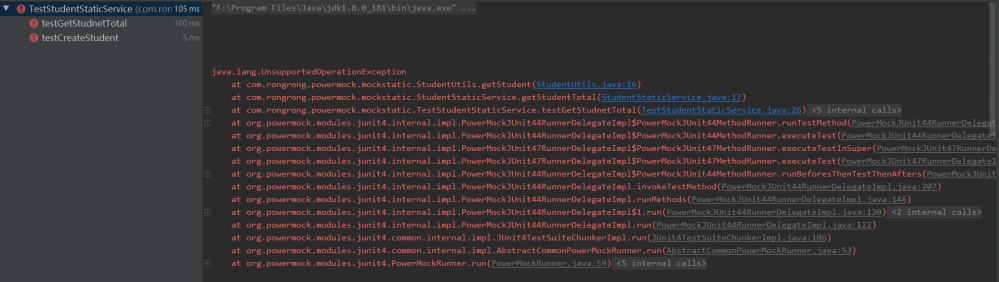 运行之前先让powermock为我们准备了StudentUtils工具类,而且采用mockstatic的方法,最后我们用powermock.verifyStatic()验证,而不是mock,更体现了powermock的强大。