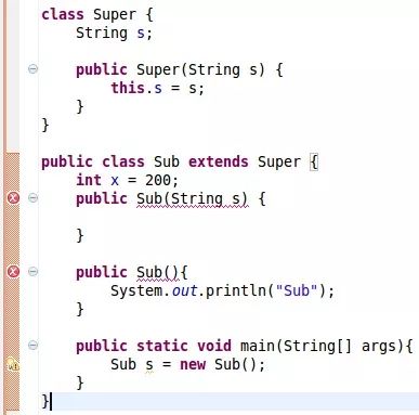 之所以出现这个编译错误,是因为父类的默认构造方法未定义。 在Java中,如果一个类没有定义构造方法,编译器会默认插入一个无参数的构造方法; 但是如果一个构造方法在父类中已定义,在这种情况,编译器是不会自动插入一个默认的无参构造方法,这正是以上demo的情况;