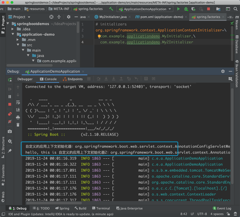 # initializers org.springframework.context.ApplicationContextInitializer=/ com.example.applicationdemo.MyInitializer,/ com.example.applicationdemo.My2Initializer