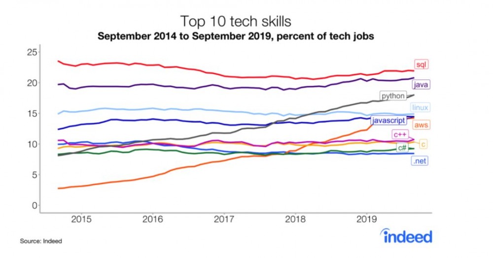 主要是第二方面的影响驱动了对Python和AWS需求的巨幅增长。