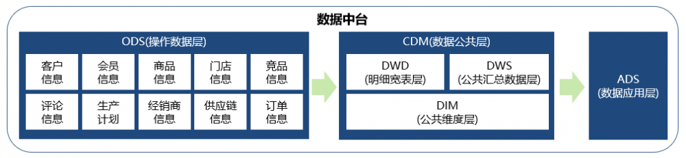 主要存放为应用而加工的个性化指标和维度,主要来源于CDM层。比如复杂的指标的预处理(比率型指标,排名指标等)。以及基于应用的表处理,行列转换等。