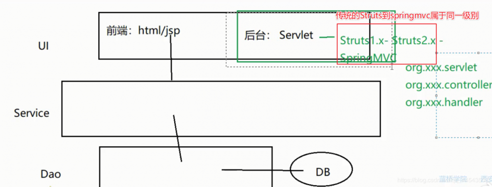 普通的servlet流程: 请求-url-pattern -交给对应的servlet去处理