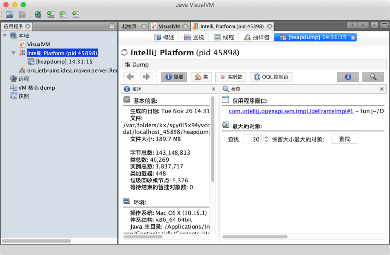 JVisualVM是一个监视,故障排除工具,打包在JDK中。启动此工具时,您可以看到本地计算机上正在运行的所有Java进程。您也可以使用此工具连接到在远程计算机上运行的Java进程。