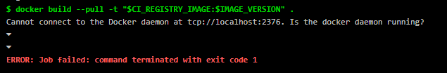 To overwrite this and make the client use TCP to contact the Docker daemon, in the other container, be sure to include the environment variables of the build container: