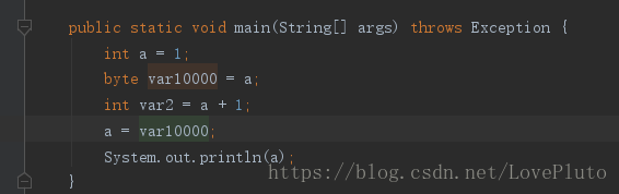弹出操作数栈顶的数(此时为 1)并赋值给局部变量第一个元素即索引为 1 的 a。局部变量是采用的数组形式,索引为 0 的是 main() 的参数 args 。
