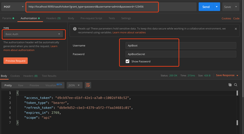 clientId = ApiBoot clientSecret = ApiBootSecret