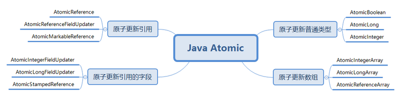 在 JDK8 的 atomic 包下,大概有 16 个类,按照原子的更新方式,大概可以分为 4 类: 原子更新普通类型 , 原子更新数组 , 原子更新引用 , 原子更新字段 。
