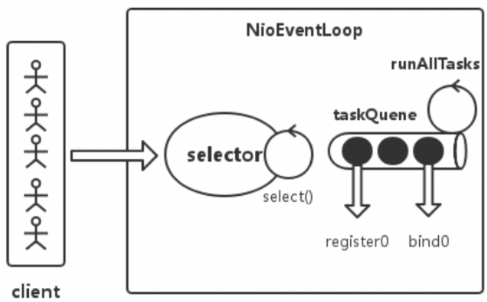 EventLoop是由事件驱动的,比如IO事件和任务等,IO事件即selectionKey中ready的事件,如 accept、connect、read、write 等,由processSelectedKeys方法触发。处理完请求时间之后,会处理内部添加到taskQueue中的任务,如 register0、bind0 等任务,由runAllTasks方法触发。注意NioEventLoop在Linux中默认底层是基于epoll机制。