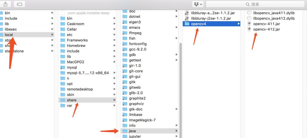 // /opt/local/share/OpenCV/java/ 为放置opencv jar和so文件的目录 export DYLD_LIBRARY_PATH="/opt/local/share/OpenCV/java/:$DYLD_LIBRARY_PATH" export JAVA_LIBRARY_PATH=$DYLD_LIBRARY_PATH Linux中将DYLD_LIBRARY_PATH替换为LD_LIBRARY_PATH