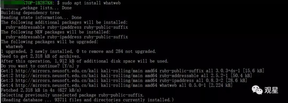 在kali下sudo apt install whatweb :