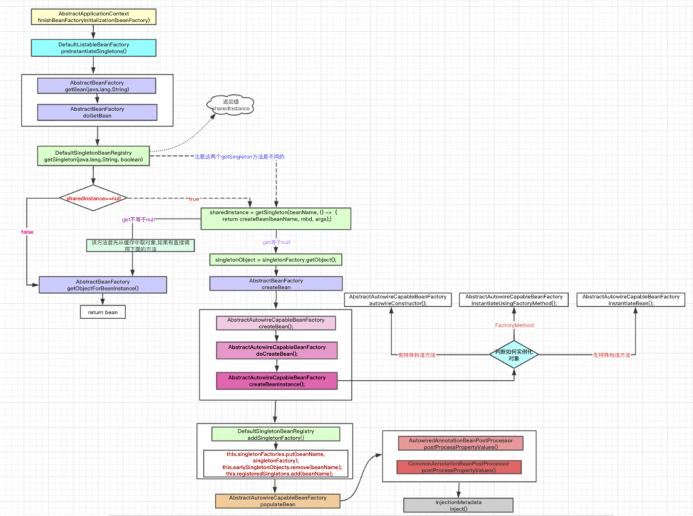 到这里整个初始化过程就讲解完了;下面画个图讲解一下finishBeanFactoryInitialization方法的整个过程: