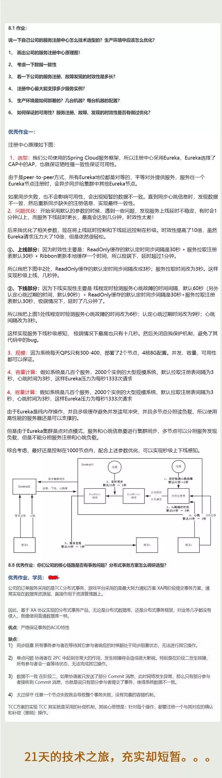 我带着大家一起,用21天的时间,剖析了java进阶面试中对分布式专题考察的各种技术点。并且通过大量的作业,让大家将这些技术融合于自己的项目中,学以致用,融会贯通。