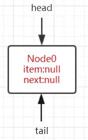 如图,head和tail指向同一个节点Node0,该节点item域为null,next域为null。