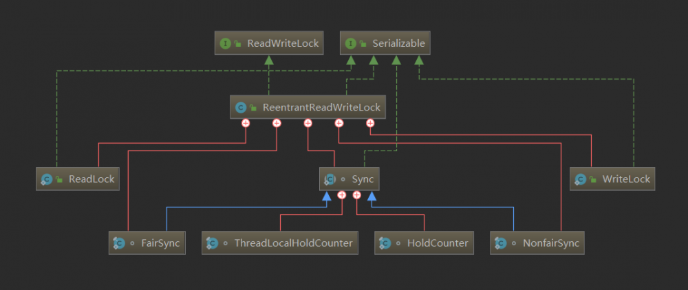 可以看到,Sync同步类实现了AQS抽象类。也就是说ReentrantReadWriteLock也是基于AQS来实现的。