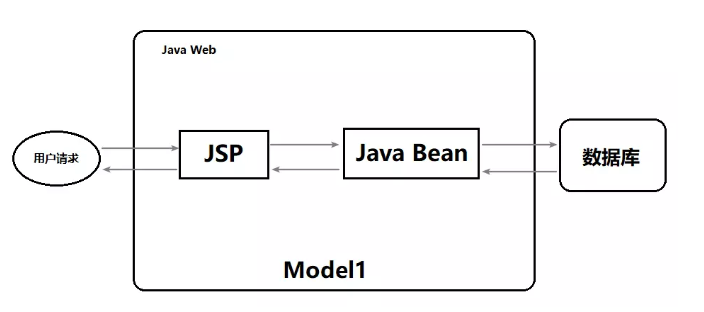 在早期Java Web的开发中,统一把显示层、控制层、数据层的操作全部较高JSP或者JavaBean来处理,称之为Model1: