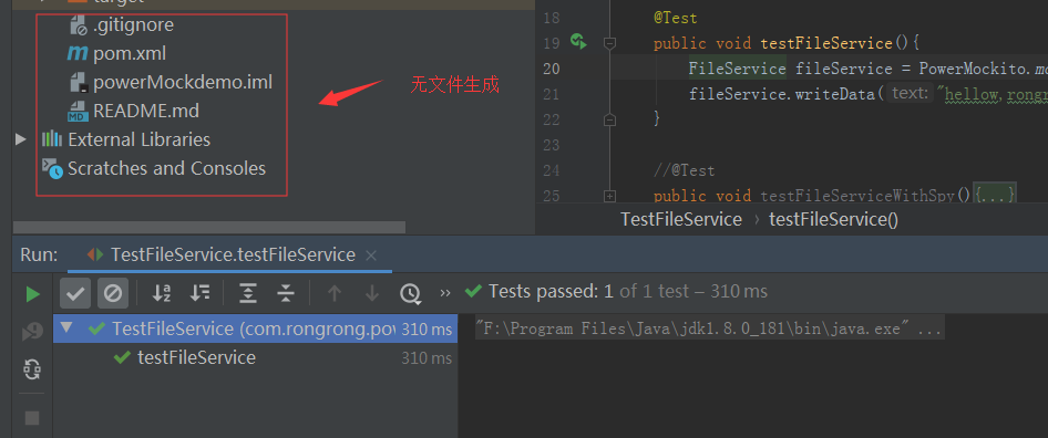 直接运行这个测试用例,你会发现在项目根目录下生成了一个新文件,并且里面写入我们预期设定的内容,运行结果如下图: