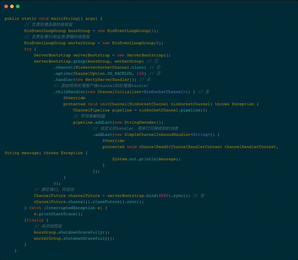 先来看一段服务端启动的demo代码。